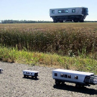 This is a scale model of a mobile lounge used at Washington Dulles International Airport in Washington.